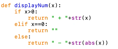 But the kind of bothers me, so I’m going to write a function that will display the correct sign: