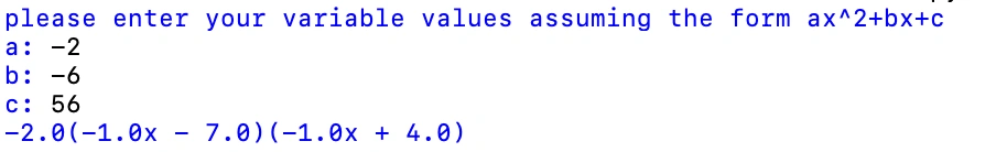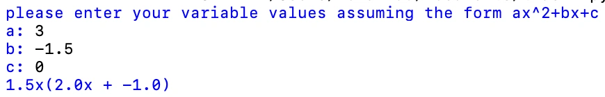 We will now print out our factored quadratic: