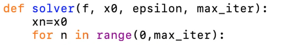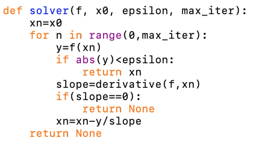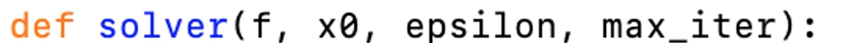 We will define a function solver that performs the Newton-Raphson algorithm.