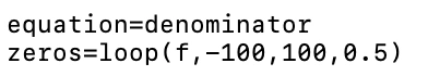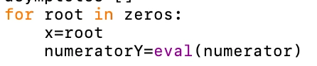 We iterate through the found roots (zeros) and evaluate the numerator at each point.