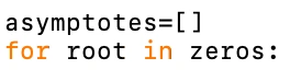 We find the zeros of the denominator using our root solver. These are the candidate values for vertical asymptotes.